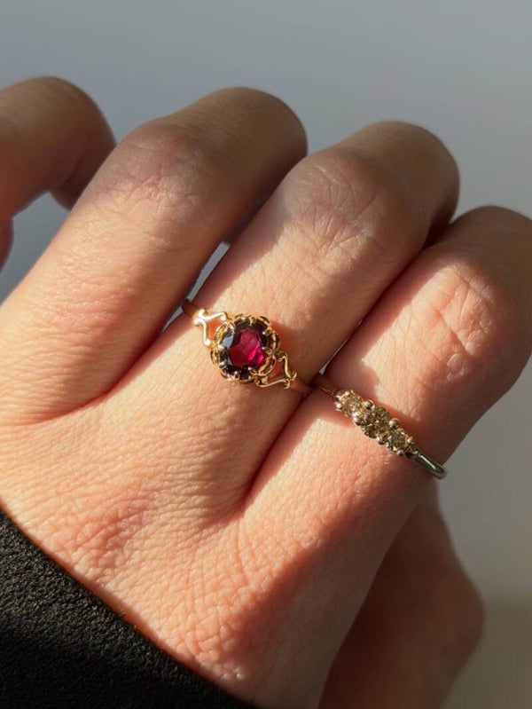 Chelsey, What’s better than diamonds? Champagne-colored diamonds. ✨This stunning row ring is truly magnificent, a unique piece crafted in 9-carat gold. Size 18. €339.-